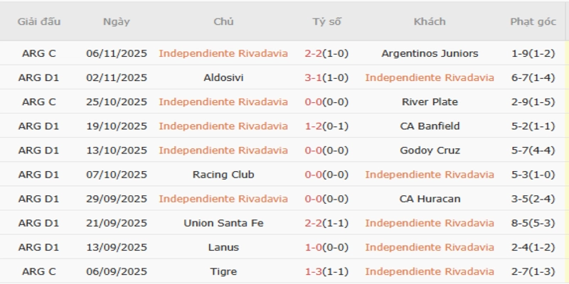 Trên đây là những nhận định và soi kèo bóng đá chuyên sâu cho màn thư hùng giữa Independiente Rivadavia vs Central Cordoba diễn ra vào lúc 07h15 ngày 11/11/2025.