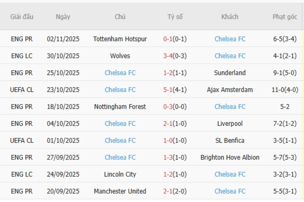 Thành tích gần đây của Chelsea